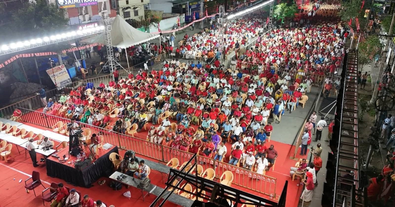 On the concluding day of the conference, Coimbatore city witnessed a rousing rally of thousands of workers from the unorganised sector, transport, electricity, ICDS workers, women workers from construction, tailors and all other sectors including IT employees from all parts of the state. At the forefront of the rally, which included a red flag parade, a parade of female comrades carrying red flags and red umbrellas, and artistic performances, attracted the attention of the people witnessing the rally. Throughout the rally, leaders of the various mass and class organisations extended their greetings. Particularly unique was the participation of young members of the Tamil Nadu Balar Sangam.