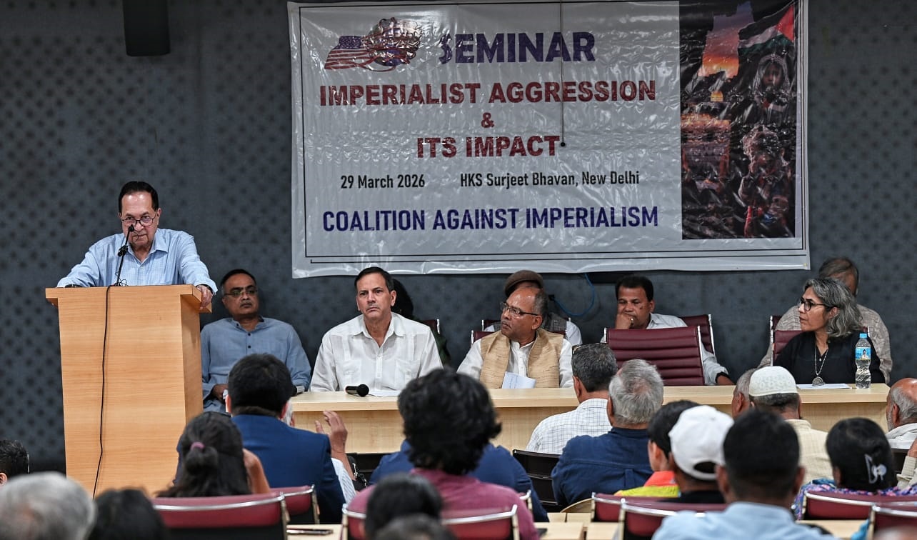 In a packed hall in Harkisan Singh Surjeet Bhawan, New Delhi, on 29 March, activists from Left parties and mass organizations, journalists, academics, diplomats, and a substantial number of students and youth had turned up to discuss and deliberate on “Imperialist Aggression & Its Impact.” The seminar, which was held by the Coalition Against Imperialism, was a timely reminder of the danger posed to humanity by imperialism and the perils of staying silent. The horror, shock, and numbness as a result of a quick succession of events over the last few months that have led to the loss of thousands of lives and untold misery in various parts of the world, the concern over shortages of gas cylinders and price rise, and the determined resolve to stand up and fight were all evident in the milieu.